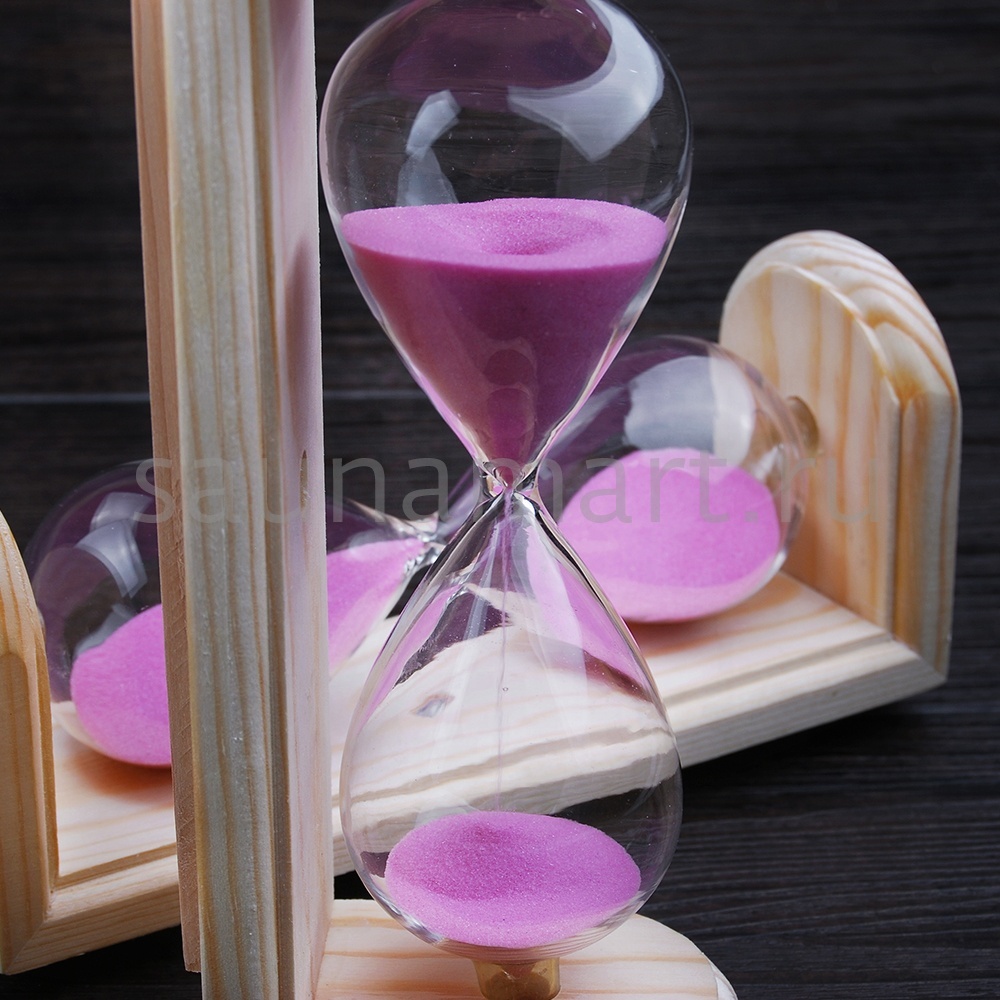 3. Настоящий стеклянный таймер с цветным песком на 15 минут.