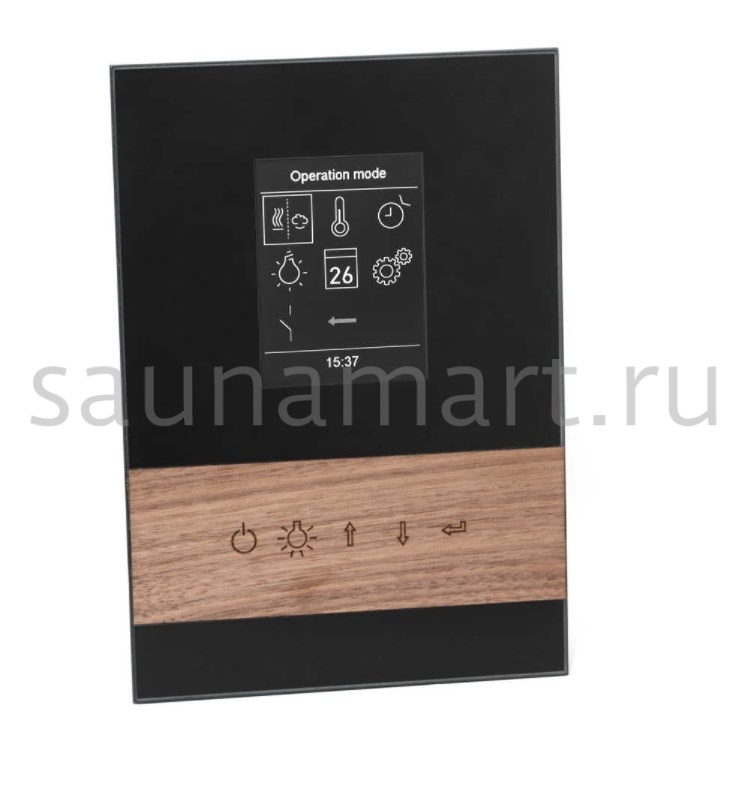 Материал блока управления: закаленное стекло и натуральное дерево