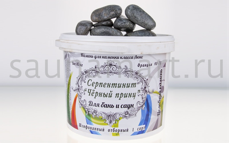Камни Серпентинит Черный принц шлифованный фр. 40-70мм уп. 10кг.