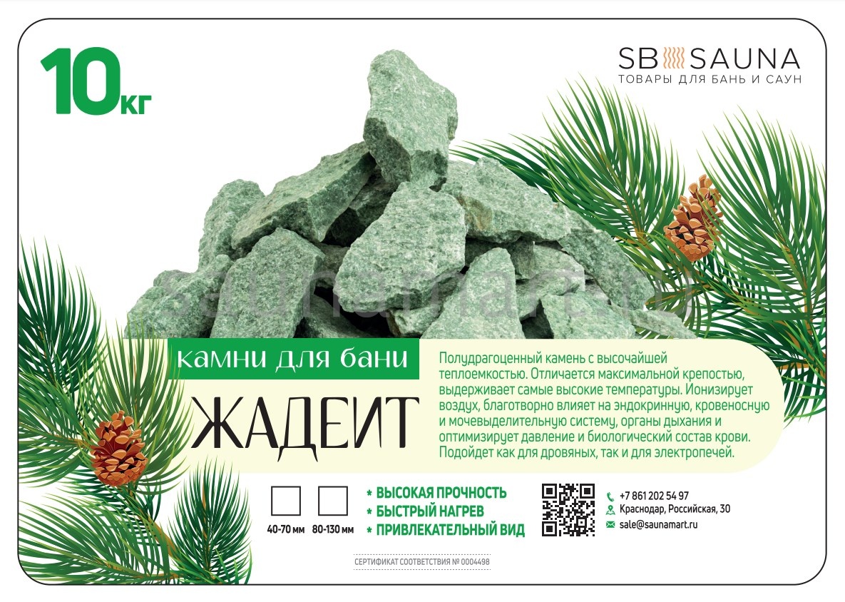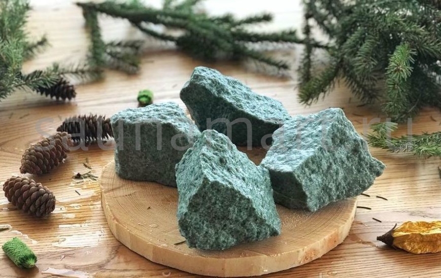 Камень жадеит колотый фракции 40-70 мм — натуральный минеральный наполнитель для банных печей. Упаковка: мешок 10 кг. Месторождение: Хакасия, Россия.