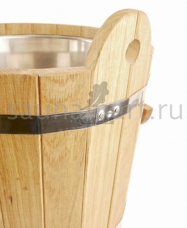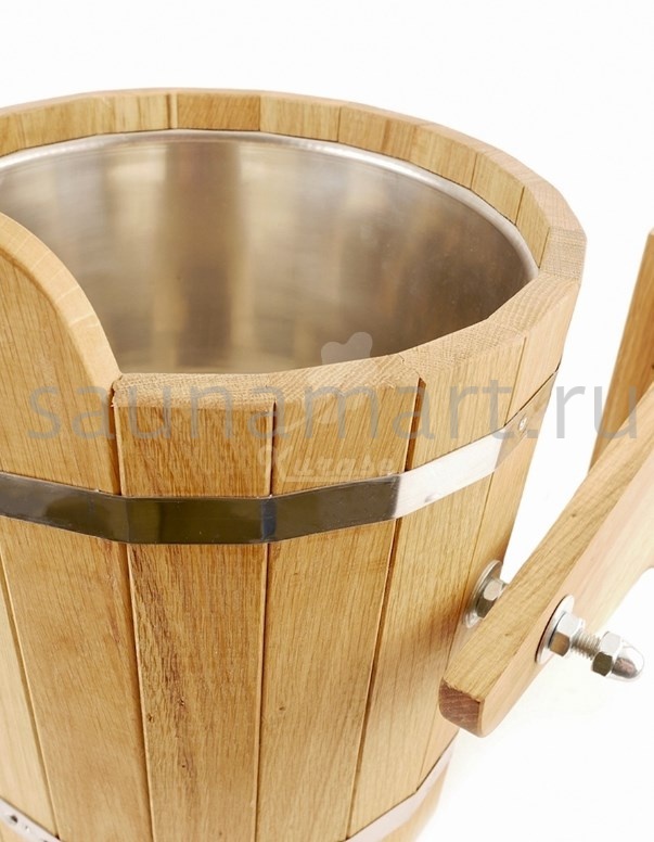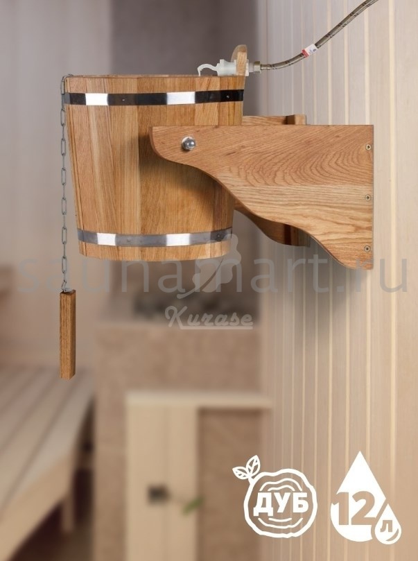 Обливное устройство для бани и сауны. Объем 12 литров. Материал изготовления - древесина дуба. Внутренняя вставка из нержавеющей стали предотвращает появление грибка и ржавчины.