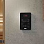 Дизайн пульта управления Helo Pure соответствует своему названию — он простой и почти аскетичный. У панели тонкий черный корпус, на котором контрастно выделяются белые контуры управляющих символов и ярко-красный индикатор, отображающий температуру, влажность и другие параметры сауны.