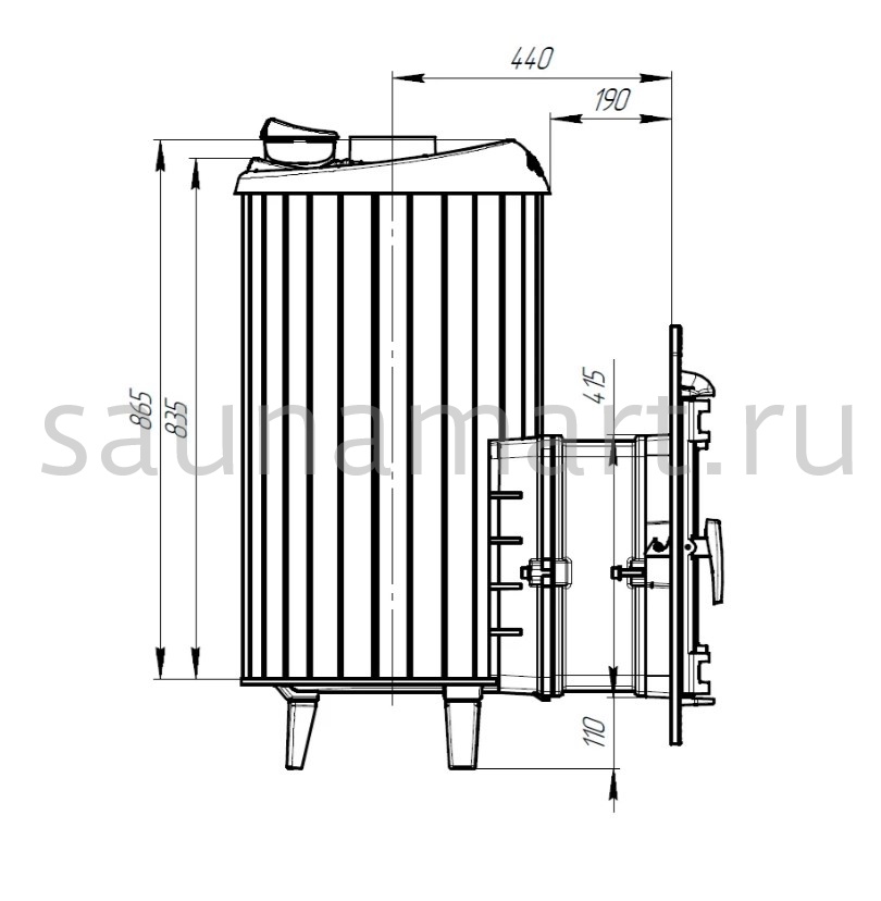 Модель с увеличенной каменкой и повышенной производительностью. Ламели по периметру внешней каменки не только обладают хорошими теплонакопительными свойствами, но и придают печи оригинальный внешний вид.