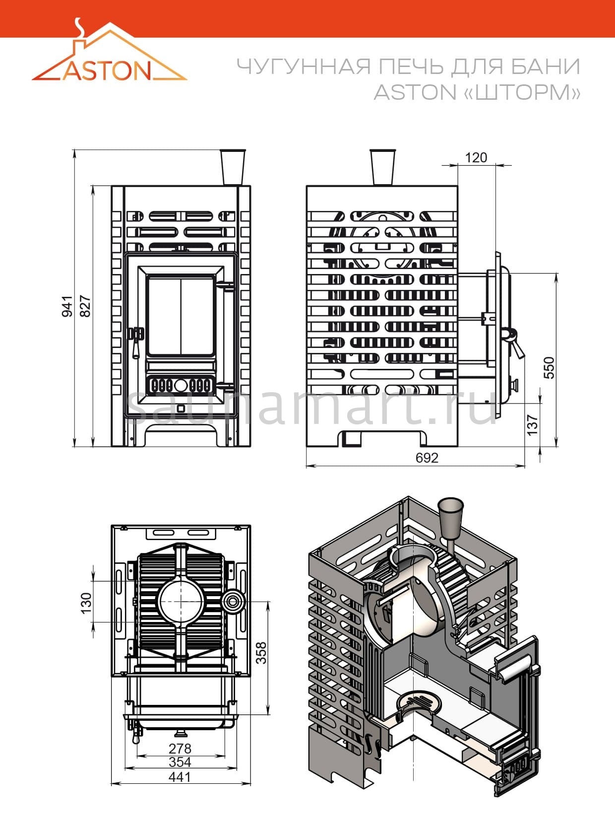 Преимущество печей ASTON: Конструкция разработана для максимальной тепловой эффективности при минимальном расходе ресурсов - времени и топлива. Каменка и корпус имеют скошенные поверхности, что обеспечивает свободное движение дымовых газов без образования "дымовых карманов". Такая геометрия позволяет всем частям печи прогреваться равномерно как по температуре, так и по времени, обеспечивая полное сгорание топлива и быстрый результат.