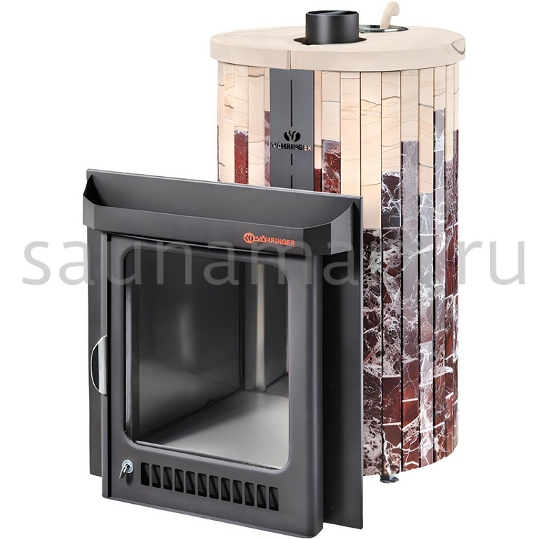 Благодаря облицовке из натурального камня по технологии "Ламель" несёт удивительное, целебное тепло, сохраняя, навсегда, изумительный облик. Печь для бани от завода V?HRINGER, в облицовке "Ламель", может быть изготовлена из камня Жадеит или "Окаменевшее дерево", когда великолепный, сугубо индивидуальный орнамент каменного среза, переносится на печь.