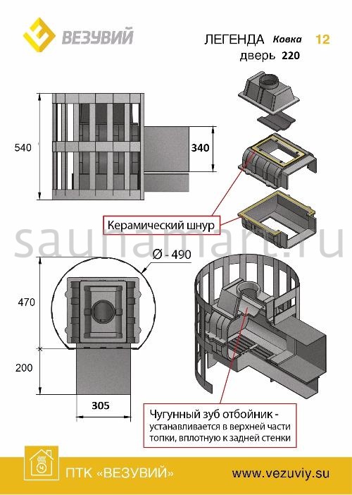 Печь дровяная ВЕЗУВИЙ Легенда ковка12 дверца 220