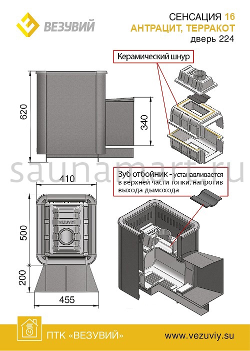 Печь дровяная ВЕЗУВИЙ Сенсация 16 антрацит дверца 224
