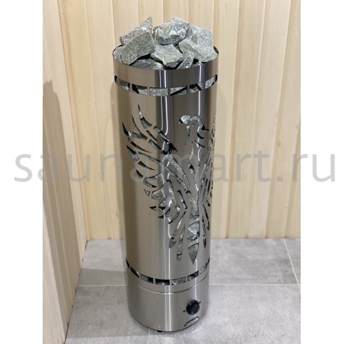 Цилиндрическая конструкция с высокой загрузкой камня (дает возможность согреваться от камня, получая мягкое тепло),