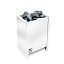 Представленная модель электрокаменки имеет отсек для камней, который вмещает до 15 кг. Она монтируется напольно.