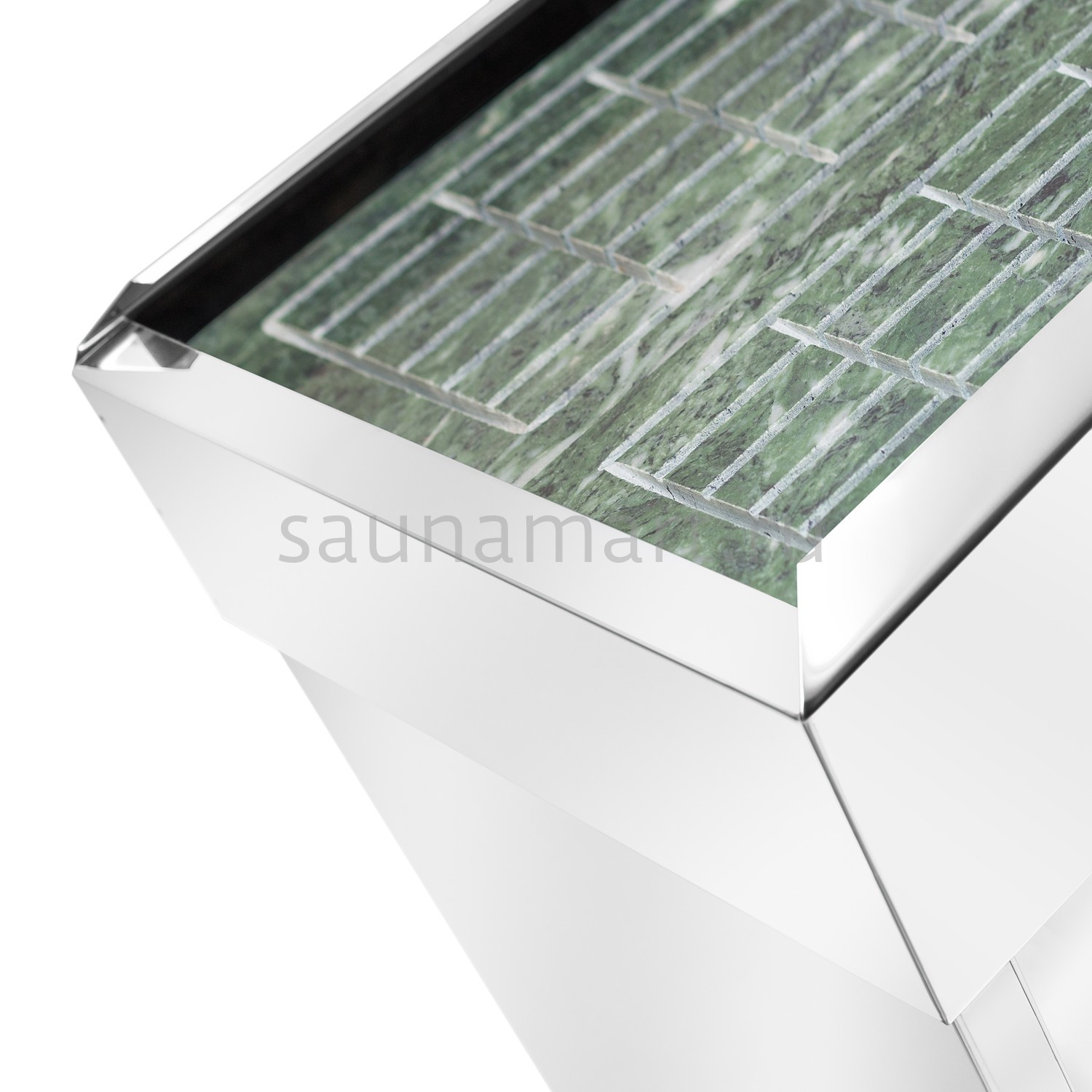 Электрокаменка оздоровительной серии в комплекте с двумя горизонтальными нагревательными плитами из природного камня Змеевика. Каждая плита высотой 6 см, массой 18 кг, с распилами специальной формы, и может использоваться в качестве испарителя. На такой плите вода испаряется постепенно и создает благоприятный и комфортный климат в бане. Змеевик уже долгие годы используется для изготовления печей для бань. Он хорошо нагревается, долго держит тепло и выдерживает резкие перепады температур не растрескиваясь.