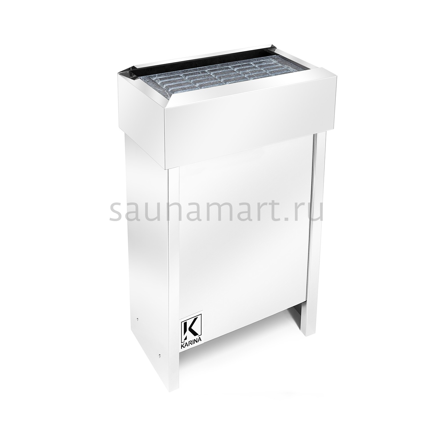 Электрическая печь KARINA Eco 8 mini Талькохлорит горизонтальный создана для семейных саун объемом до 12 куб. метров. Корпус имеет современный лаконичный дизайн, основанный на простых линиях и формах. Выполнен из высококачественной нержавеющей стали, надежно защищает прибор от воздействия влаги.