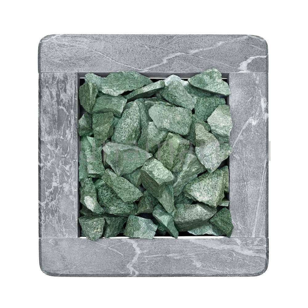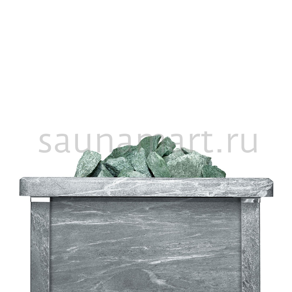 Главной особенностью серии Quadro является полная облицовка натуральным талькохлоритом - камнем с уникальными теплоаккумулирующими свойствами. При нагреве талькохлорит мягко излучает тепло, создавая особый микроклимат в парной. Этот природный материал не только обеспечивает равномерный прогрев, но и выделяет полезные минеральные вещества, благотворно влияющие на здоровье.
