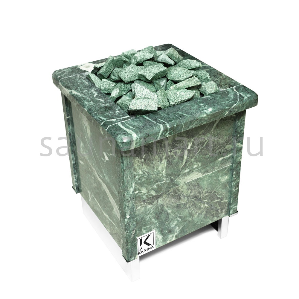 Электрическая печь KARINA Quadro 9 Змеевик представляет собой электрокаменку, полностью облицованную натуральным камнем, и способной прогреть семейные бани и сауны объемом до 14 м3.