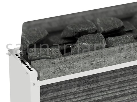 Лаконичный и сдержанный внешний вид, простота использования, универсальность. Если именно так вы представляете свою идеальную печь для сауны, то мы рады предложить вам электрокаменку Mini Cirrus CIR2-40NB-P от компании SAWO. Mini Cirrus CIR2-40NB-P - это вертикальная электрическая печь, предназначенная для подвесной настенной установки. Модель идеально подойдёт для парной объёмом 3-6 метра кубических. Инженеры компании SAWO наделили каменку уплощённой формой для максимальной экономии пространства. Фронтальная часть электрокаменки выполнена в виде решётки. Такая конфигурация не только придаёт изюминку дизайну каменки, но и играет важную роль в эксплуатации Mini Cirrus CIR2-40NB-P. Наличие фронтальной решётки обеспечивает увеличенный доступ к 6 кг камней, которые вмещает в себя печь. Снаружи данная модель имеет облицовку из натурального камня талькохлорита. Масса облицовки составляет 23 кг. Это даёт возможность быстро прогреть помещение и долго сохранять температуру нагрева без лишних энергозатрат. Подливая воду на камни и облицовку, можно получить большое количество лёгкого мелкодисперсного пара и насладиться влажной русской баней. Все элементы электрокаменки выполнены из нержавеющей стали высочайшего качества. Материал прекрасно переносит эксплуатацию в агрессивной среде с высокой влажностью и температурой. Для подключения печи вам потребуется наличие сетей с напряжением 220 В и 380 В. В нижней части каменки находится встроенная панель управления с простым и понятным интерфейсом. С её помощью вы сможете запрограммировать режим работы электрокаменки заранее, а также вносить необходимые корректировки непосредственно во время процедуры парения.