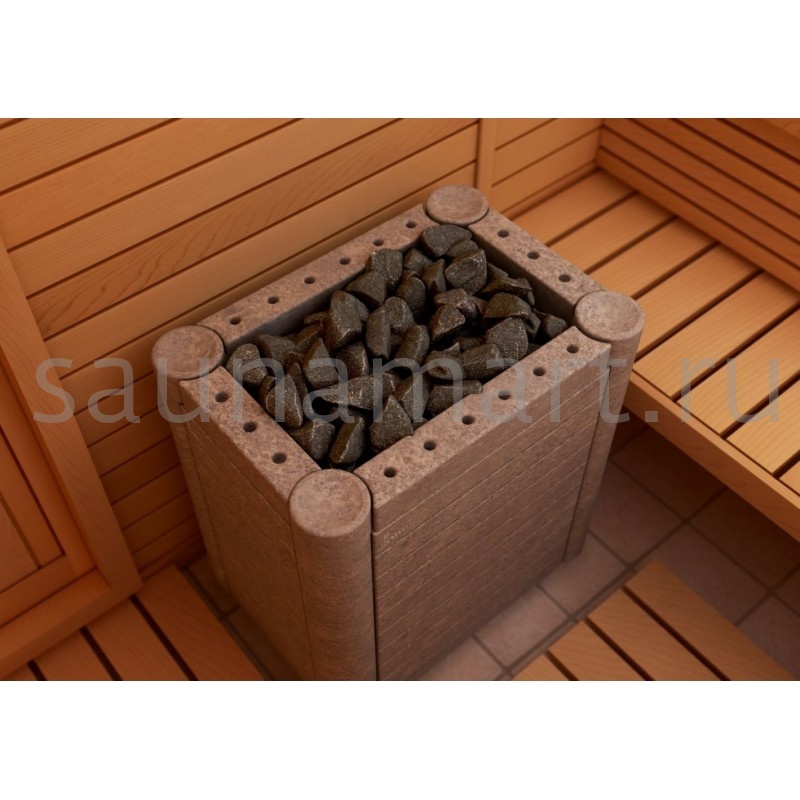 Если из всех видов банных процедур, вам более всего по нраву мягкий и лёгкий туман хамама, то вам непременно следует обратить внимание на печь с напольной установкой NIMBUS NIM-90NS-P от финской компании SAWO. Впрочем, данная модель способна удовлетворить любые предпочтения в полной мере. Внешняя облицовка из натурального камня наделяет электрокаменку SAWO NIMBUS NIM-90NS-P особым спектром преимуществ и возможностей. Благодаря каменной поверхности печь очень быстро прогревает помещение парной объёмом 8-14 метров кубических. Расход электроэнергии при этом весьма экономичен, ведь каменная облицовка длительное время сохраняет тепло. Помимо облицовки из талькохлорита в данную модель вмещается до 50 кг камней. Это делает площадь испарения поддаваемой на электрокаменку жидкости колоссальной. Вы сможете в считанные мгновения добиться требуемого уровня влажности, наполнив парную легким мелкодисперсным паром. 4 чаши для масел, расположенные по углам NIMBUS NIM-90NS-P, порадуют любителей ароматерапии. Все внутренние элементы печи выполнены из нержавеющей стали высочайшего качества. Благодаря использованию этого материала, NIMBUS NIM-90NS-P гарантированно прослужит вам долгие годы. В качестве дополнения к электрокаменке вы можете купить удобный выносной пульт с интуитивно понятным интерфейсом. Пульт размещается в предбаннике и позволяет заранее запрограммировать режим работы печи.