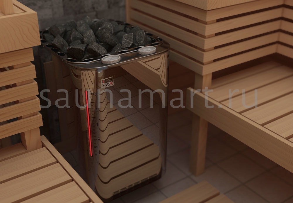 Для коммерческих бань и саун в рамках семейства электрокаменок из нержавейки компанией Sawo была создана серия печей Savonia. Внешний вид печей для сауны Savonia лаконичен, он не имеет острых углов и прекрасно вписывается в любой даже самый замысловатый интерьер. Электрокаменки обладают внушительным функционалом, но при этом достаточно компактны для своей мощности. Отдельным преимуществом является напольная установка. Вы сами определяете оптимальное место для размещения каменки, основываясь на проекте парильного помещения. Установка не требует дополнительного усиления напольного покрытия. Вес электрокаменок Savonia в зависимости от мощности колеблется в диапазоне 21-37 кг.