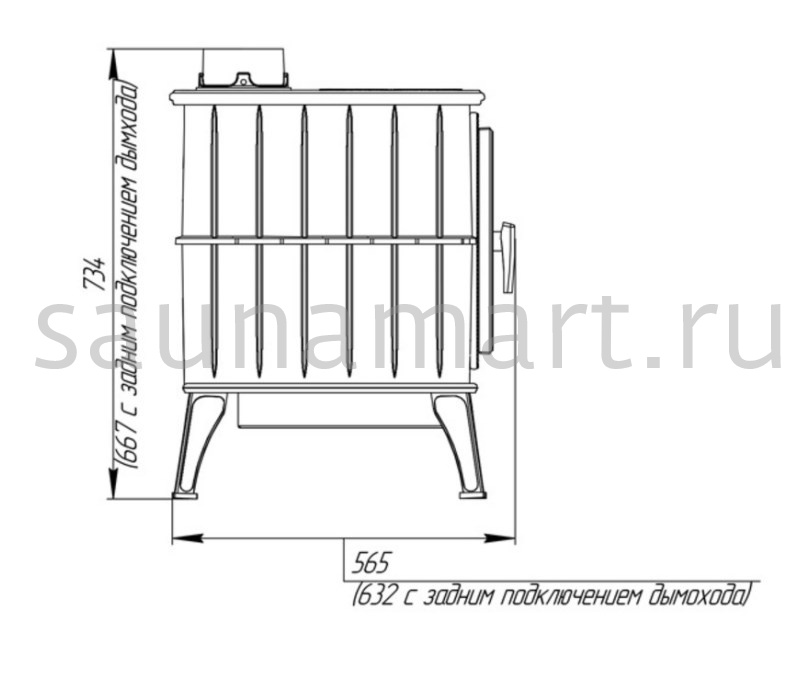 - Размер печи (ВхДхШ): 728х569х424 мм