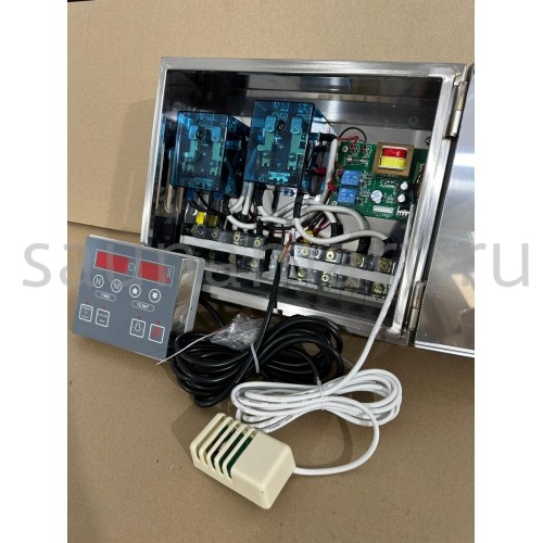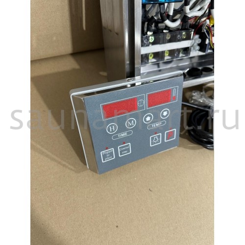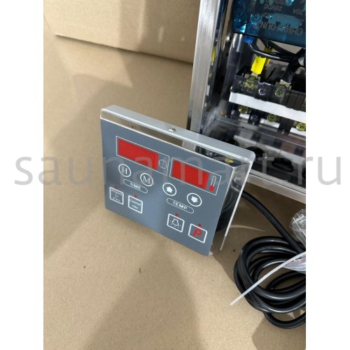 Пульт управления элeктрoкaмeнкой (электропечью для сауны) ПУЭКМ "Ресурс" цифровой программируемый до 36 кВт включительно. Пульт устанавливается в предбаннике, а датчик заводится в парилку. Длина кабеля с датчиком температуры 3 метра. Датчик с кабелем идут в комплекте с пультом.