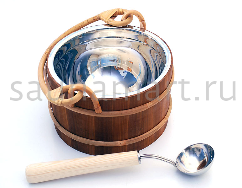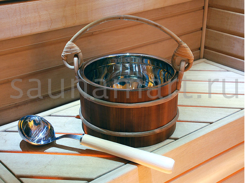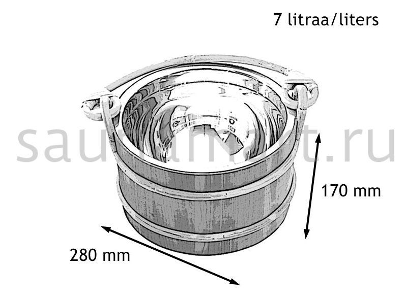 SAWO Ведро деревянное 7 л. со вставкой из нержавеющей стали Ведро в бане - вещь крайне важная и жизненно необходимая. В ведре запаривают веники, настаивают травы и фитосборы, хранят и отстаивают воду.