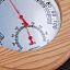 Термогигрометр имеет оригинальную круглую форму. В широкой рамке из древесины кедра находится циферблат, который сообщит о температуре воздуха. Данный прибор прекрасно подойдёт для использования в парной. Максимально допустимая для измерения температура составляет 120 градусов Цельсия. Этого максимума достаточно для комфортных банных процедур. Нагнетание в парном помещении большей температуры нежелательно, так как может быть опасным для здоровья. Благодаря универсальному дизайну термометр станет прекрасным дополнением любого интерьера.