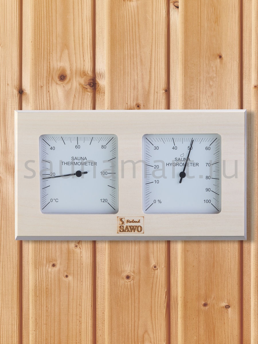 Термометр-гигрометр Sawo является незаменимым устройством для контроля значений температуры и влажности воздуха в парной комнате. Он обладает непревзойдённым качеством и украсит любую баню или сауну. Рекомендуется устанавливать на дальней стене от двери и печи на высоте около 1.5 м.